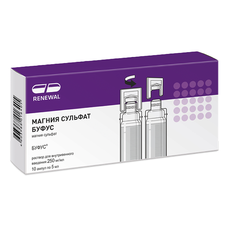 Магния сульфат буфус 250 мг/мл раствор для внутривенного введения 5 мл 10 шт