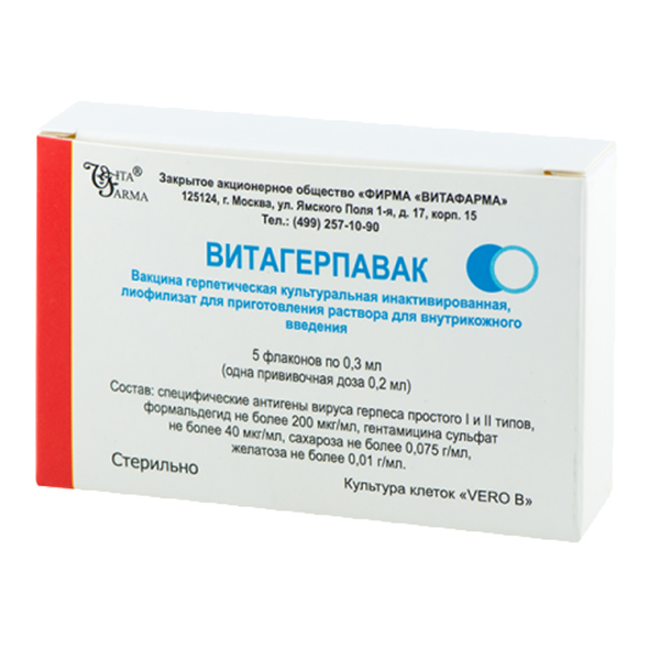 Инструкция по применению Витагерпавак Вакцина герпетическая лиофилизат для приготовления раствора для инъекций 0,3 мл 5 шт