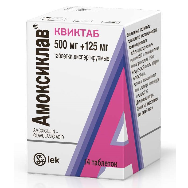 Амоксиклав Квиктаб таблетки диспергируемые блистер 500 мг+125 мг 14 шт в Москве