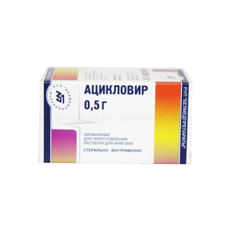 Смотреть все аналогиАцикловир 500 мг лиофилизат для приготовления раствора для инфузий 1 шт