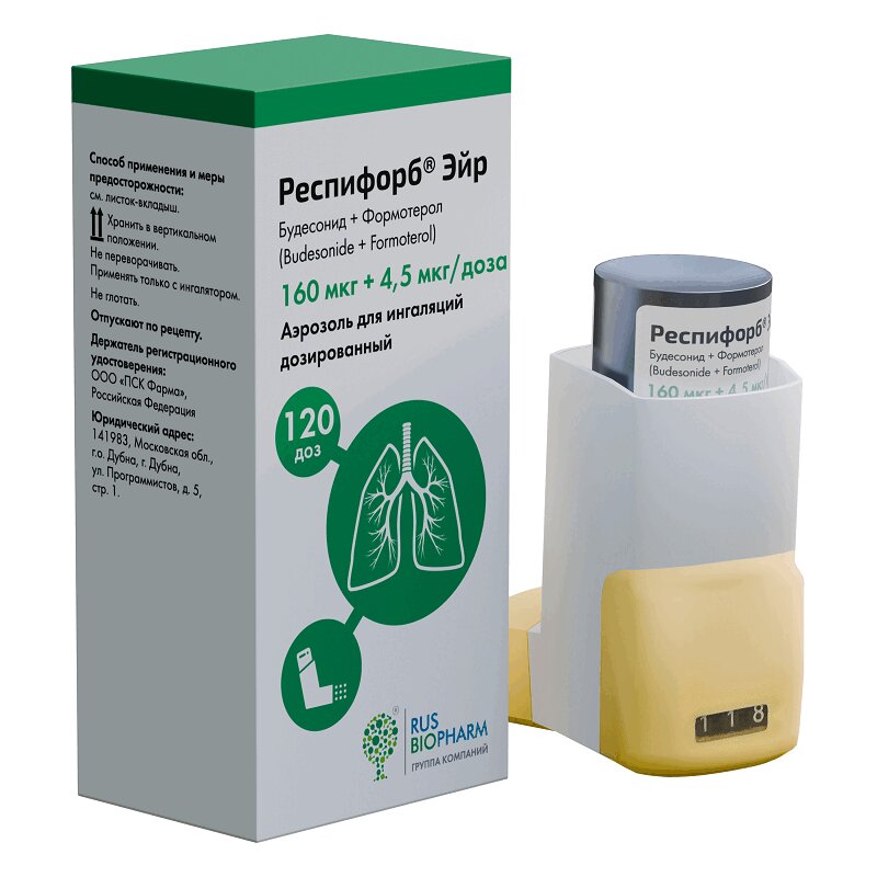 Респифорб Эйр аэрозоль для ингаляций 160 мкг+4,5 мкг/доза 120доз