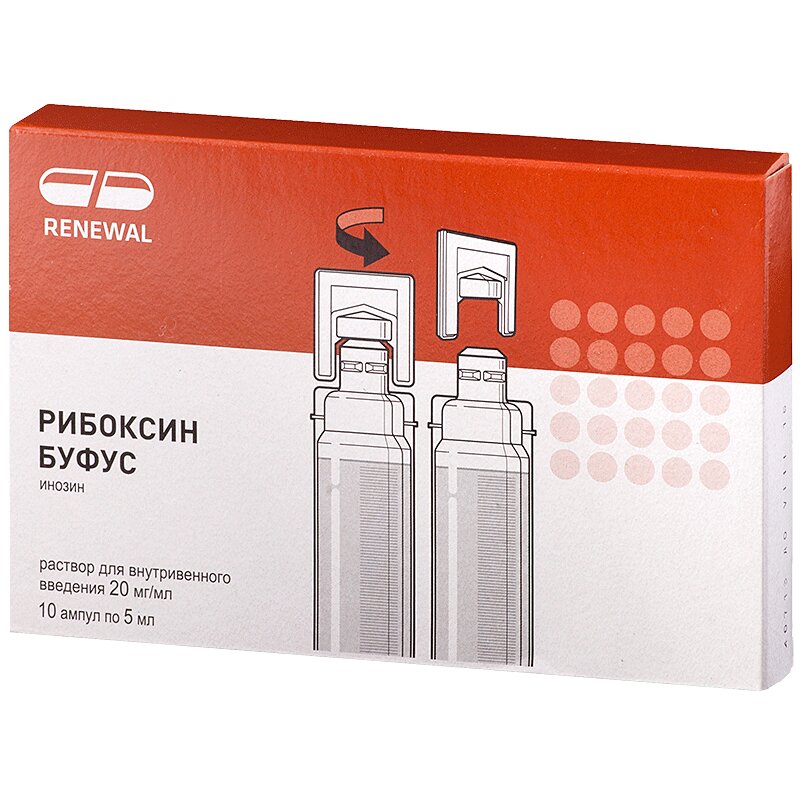 Инструкция по применению Рибоксин Буфус 20 мг/мл раствор для инъекций 5 мл 10 шт