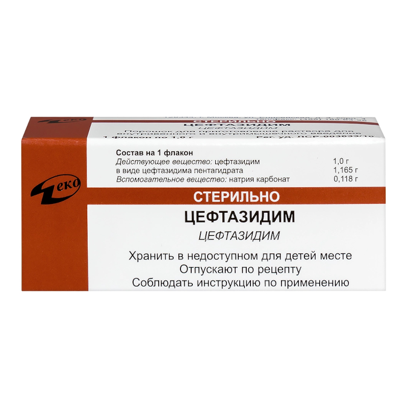 Смотреть все аналогиЦефтазидим 1 г порошок для приготовления раствора для внутривенного и внутримышечного введения 1 г 1 шт Деко в Москве