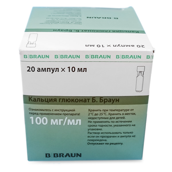 Кальция глюконат Б. Браун 100 мг/мл раствор для внутривенного и внутримышечного введения ампула 10 мл 20 шт