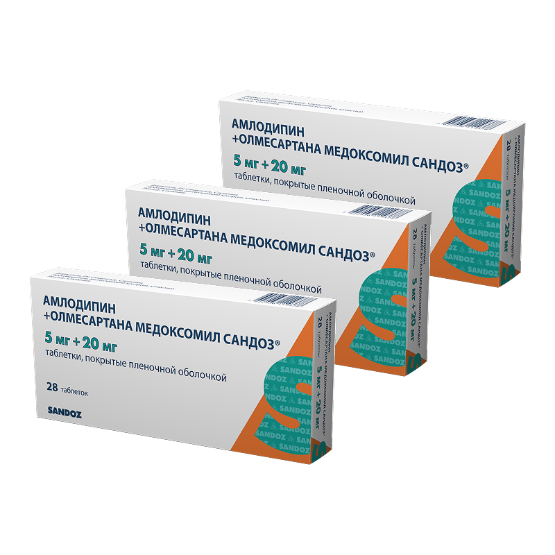 Набор 3Х Амлодипин+Олмесартана медоксомил Сандоз 5 мг+20 мг таблетки покрытые пленочной оболочкой 28 шт в Калуге