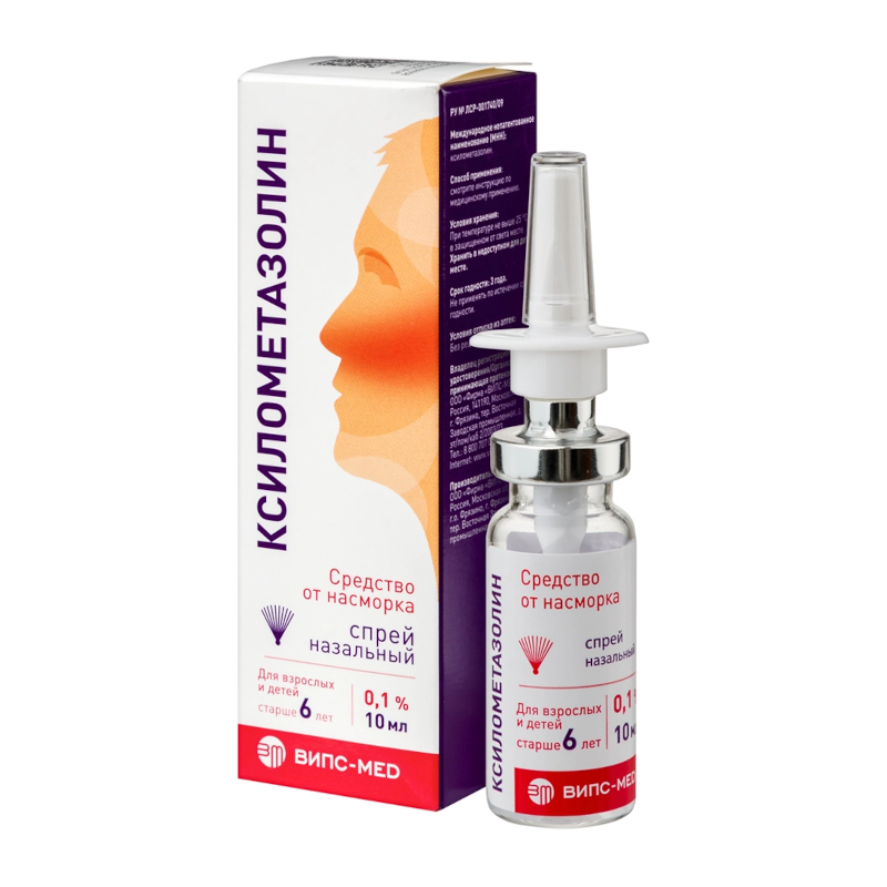 Инструкция по применению Ксилометазолин 0,1% спрей назальный 10 мл