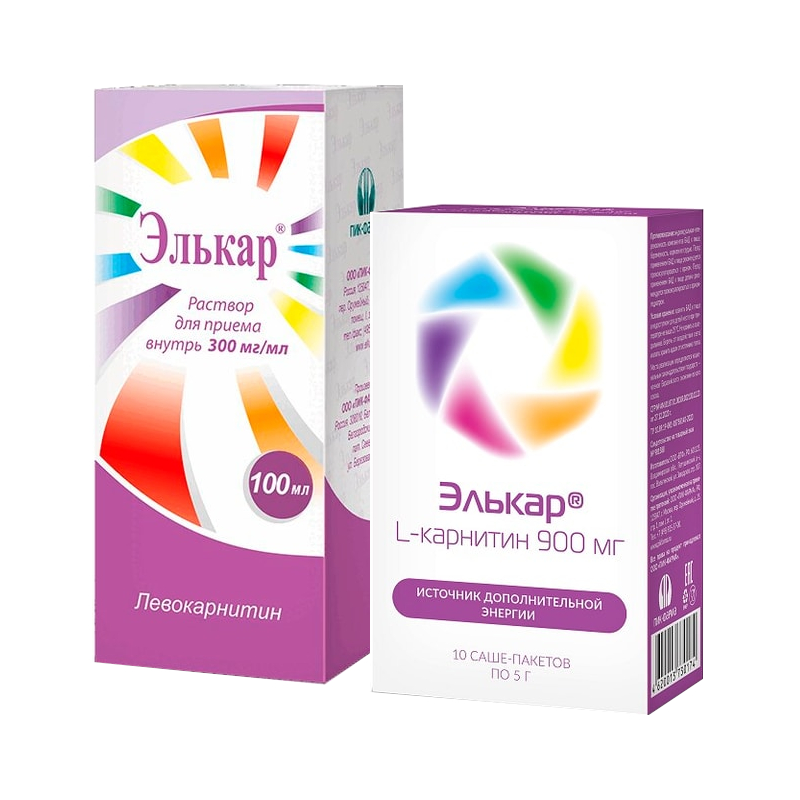 Набор Элькар 300 мг/мл раствор для приема внутрь 100 мл + Элькар 900 мг порошок для приготовления раствора для приема внутрь 5 г 10 шт в Петропавловске-Камчатском