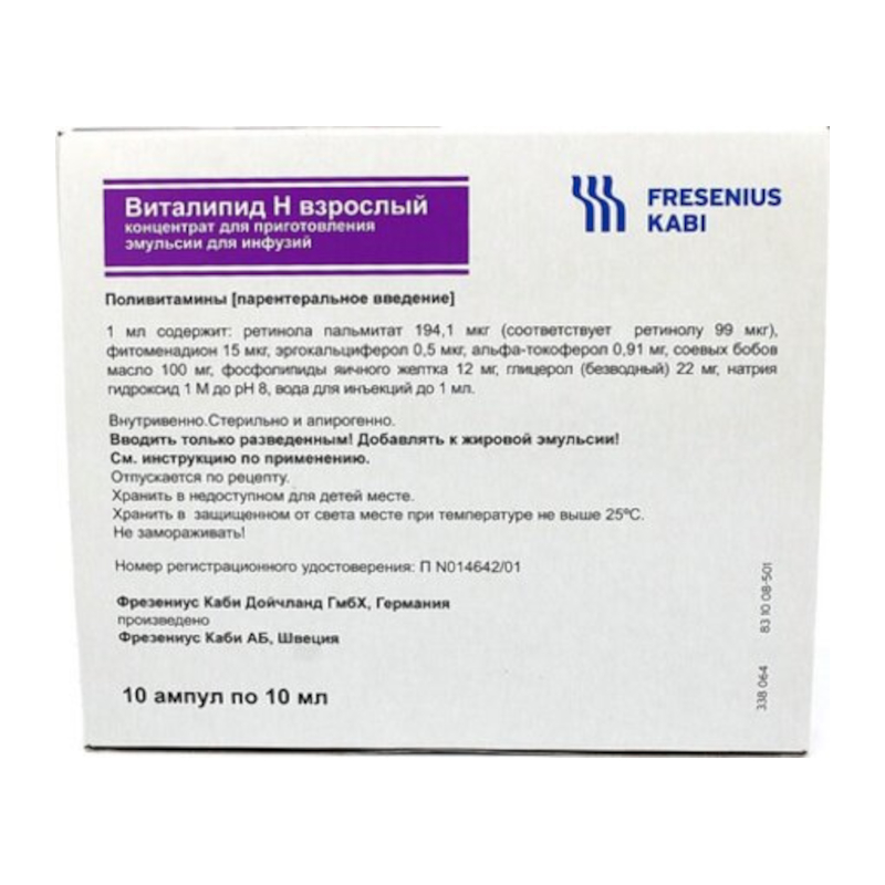 Инструкция по применению Виталипид Н взрослый концентрат для приготовления эмульсии для инфузий 10 мл 10 шт