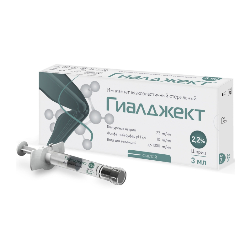 ГИАЛДЖЕКТ ИМПЛАНТАТ ВЯЗКОЭЛАСТИЧНЫЙ СТЕРИЛЬНЫЙ - предназначен для внутрисуставного введения и для околосухожильного введения: введение в проекцию зоны повреждения связочного аппарата, околосухожильное пространство (сухожильные каналы).