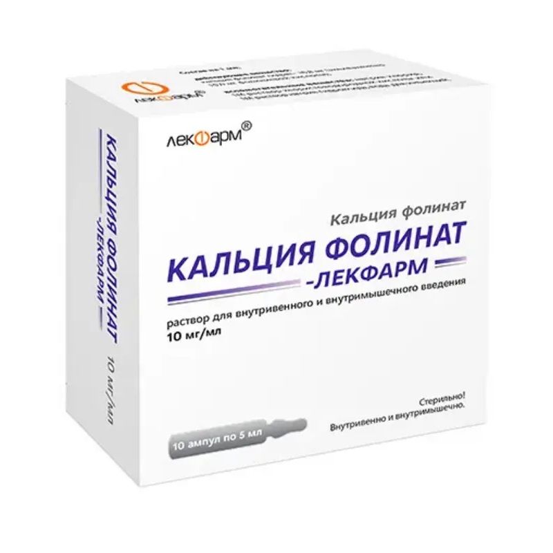 Кальция Фолинат-Лекфарм 10 мг/мл раствор для внутривенного и внутримышечного введения ампула 5 мл 10 шт