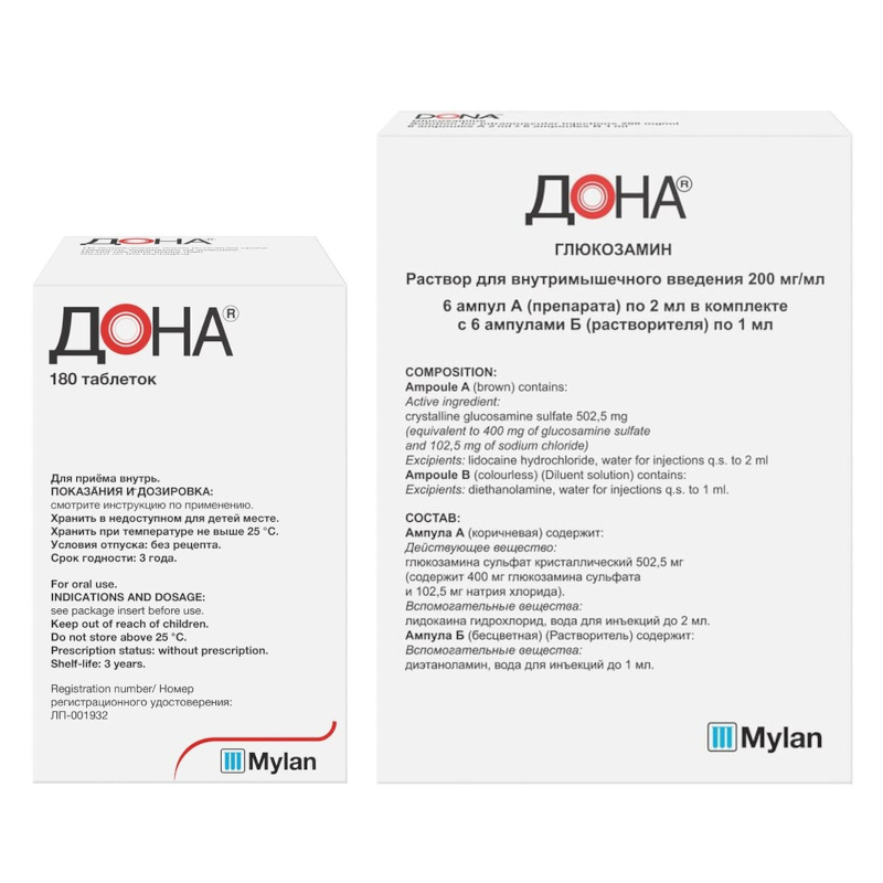 Набор Дона 750 мг таблетки покрытые пленочной оболочкой 180 шт + Дона 400 мг раствор для внутримышечного введения 2 мл 6 шт