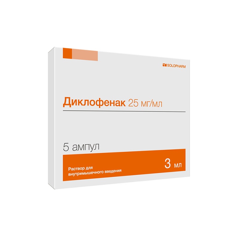 Инструкция по применению Диклофенак 25 мг/мл раствор для инъекций 3 мл 5 шт