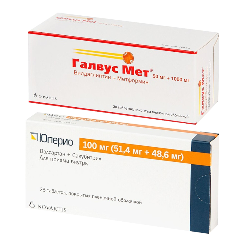 Набор Галвус Мет 50 мг+1000 мг таблетки покрытые пленочной оболочкой 30 шт + Юперио 100 мг таблетки покрытые пленочной оболочкой 28 шт в Красноярске
