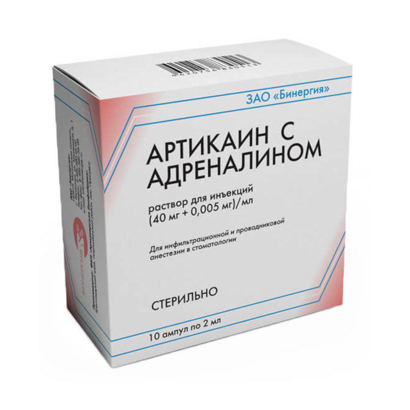 Артикаин с адреналином 40 мг+0,005 мг/мл раствор для инъекций 2 мл 10 шт