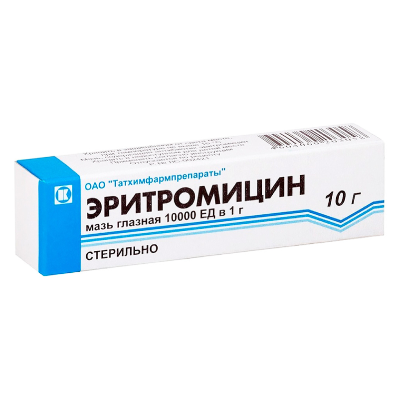 Эритромицин 10000 ЕД/г мазь глазная 10 г 1 шт Татхимфармпрепараты в Пензе