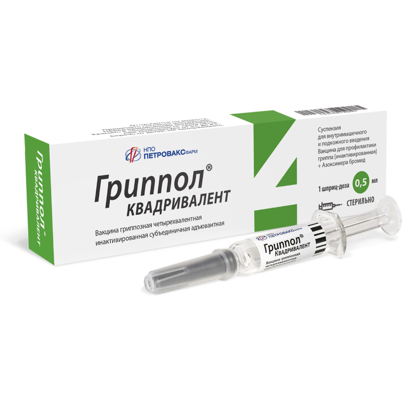 Гриппол Квадривалент Вакцина гриппозная 0,5 мл/доза раствор для внутримышечного и подкожного введения шприц 0,5 мл 1 шт