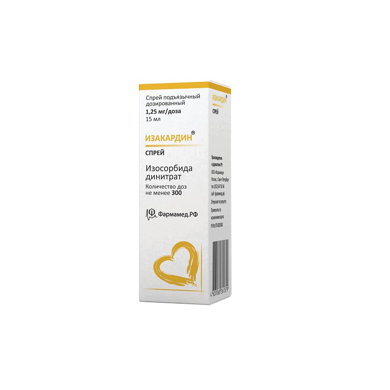 Инструкция по применению Изакардин 1,25 мг/доза спрей подъязычный 300 доз