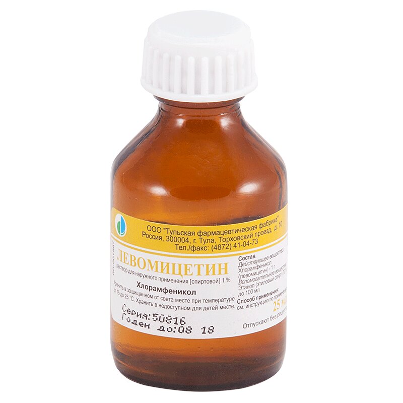 Инструкция по применению Левомицетин 1% раствор спиртовой для наружного применения 25 мл
