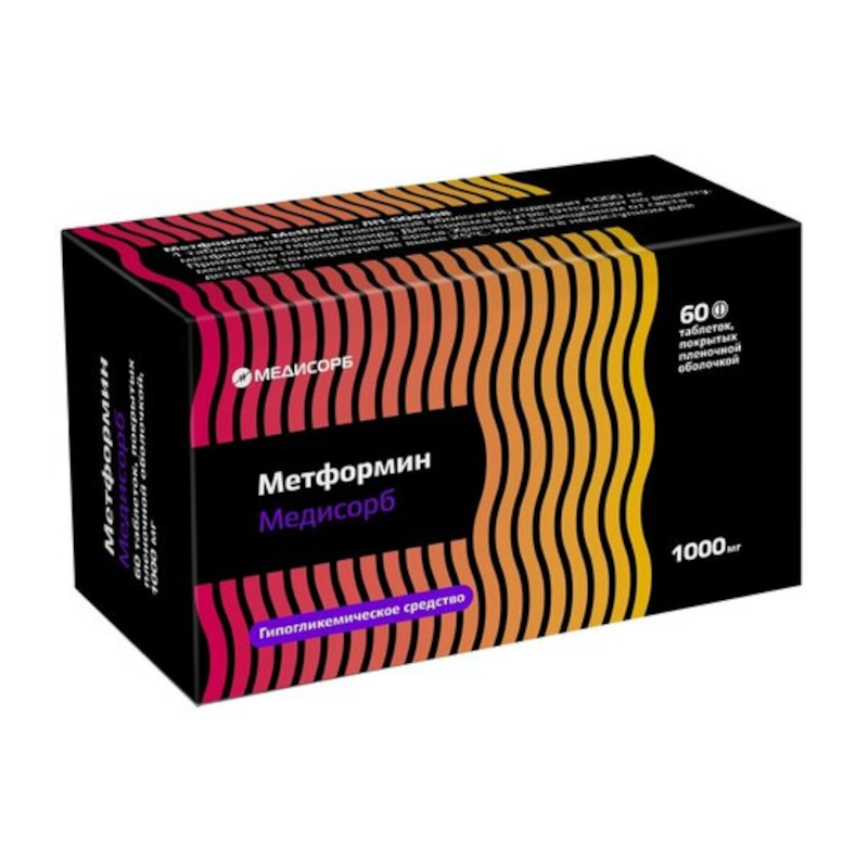 Метформин Медисорб 1000 мг таблетки покрытые пленочной оболочкой 60 шт