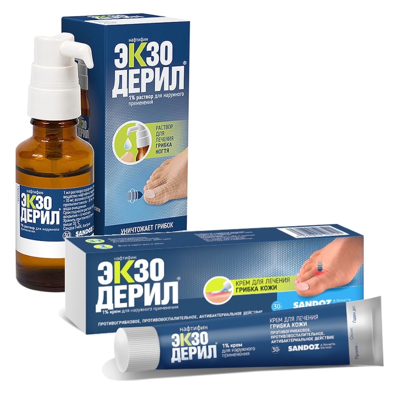 Инструкция по применению Набор Экзодерил 1% раствор 30 мл + Экзодерил 1% крем 30 г
