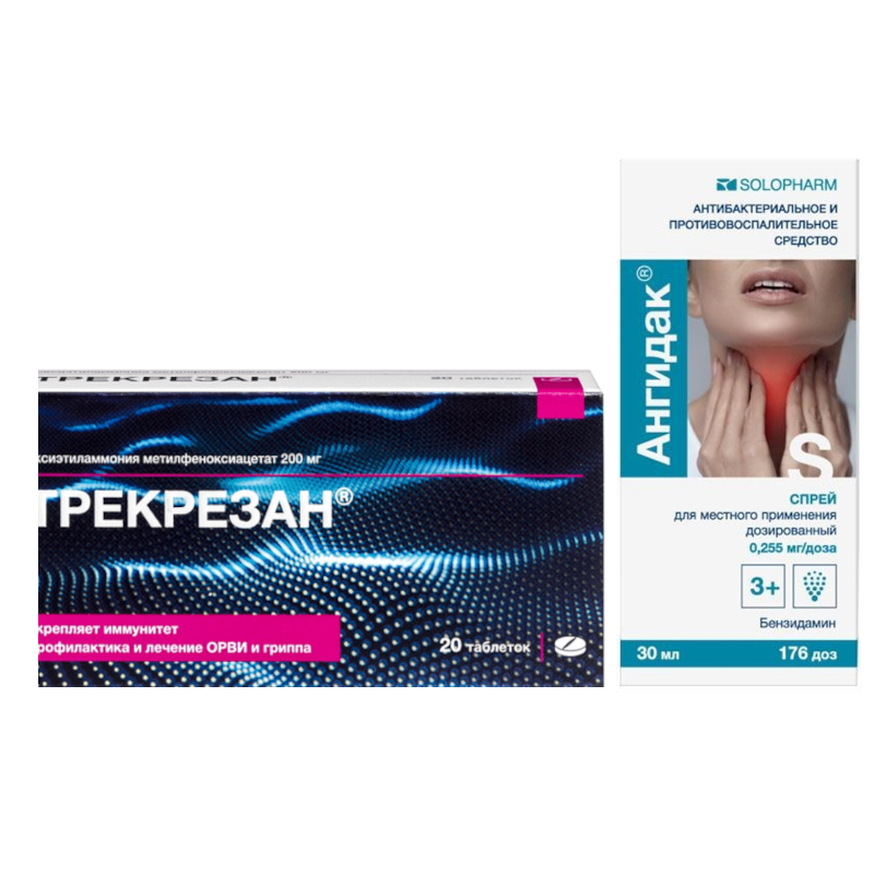 Набор Трекрезан 200 мг таблетки 20 шт + Ангидак 0,255 мг/доза спрей для местного применения 176 доз