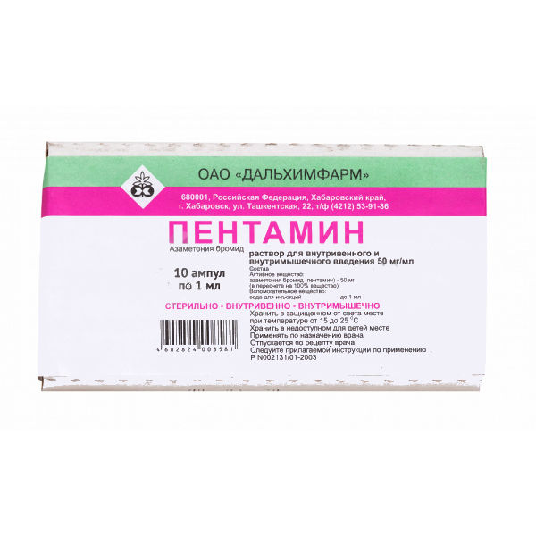 Инструкция по применению Пентамин 50 мг/мл раствор для инъекций 1 мл 10 шт