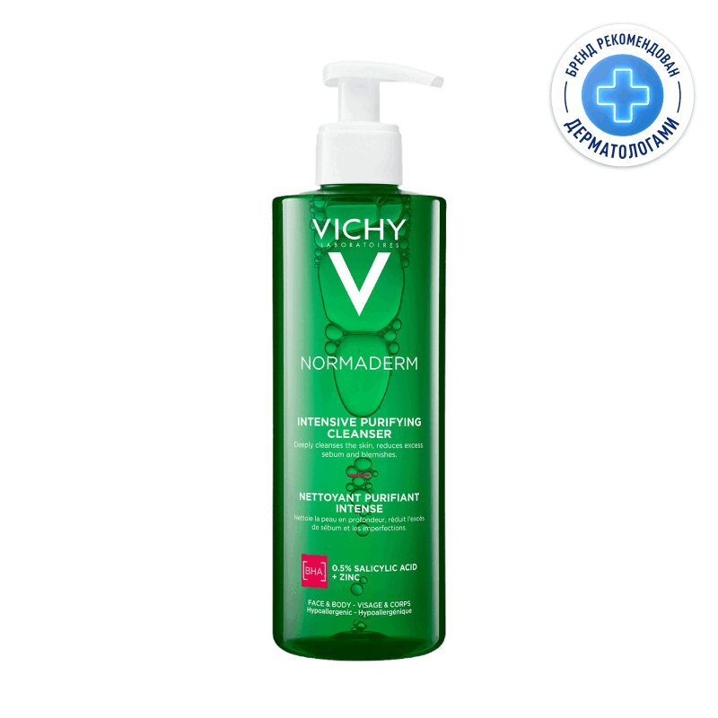 1-й* интенсивно очищающий гель для проблемной кожи, обогащенный минералами и пробиотикам и, на ежедневной основе уменьшающий жирность кожи без пересушивания и защищающий её от появления несовершенств. Эффективная комбинация активных ингредиентов: [САЛИЦИЛОВАЯ КИСЛОТА]: обладает антибактериальным действием + [ПРОБИОТИК BIFIDUS]: восстанавливает защитный барьер кожи + [ОЛИГОЭЛЕМЕНТЫ]: борются с воспалениями и регулируют выработку себума + [МИНЕРАЛИЗИРУЮЩАЯ ТЕРМАЛЬНАЯ ВОДА]: укрепляет и защищает кожу. Кожа чистая и свежая, без чувства стянутости. Для проблемной кожи, склонной к жирности. Подходит для чувствительной кожи. Гипоаллергенно. Некомедогенно. Без мыла и сульфатов. Не пересушивает кожу при частых умываниях. Предотвращает появление новых несовершенств. Не вызывает повышенное выделение себума. Физиологический pH 5.5. Очищающая основа растительного происхождения. Клинически доказанная эффективность**, протестированная под контролем дерматологов. -28% комедонов и чёрных точек. -18% воспалительных элементов. -17% гиперсебореи. C 1-го применения поры заметно уменьшены. * Среди продуктов VICHY. ** Клиническое исследование на 50 женщинах, применение в течение 4 недель.