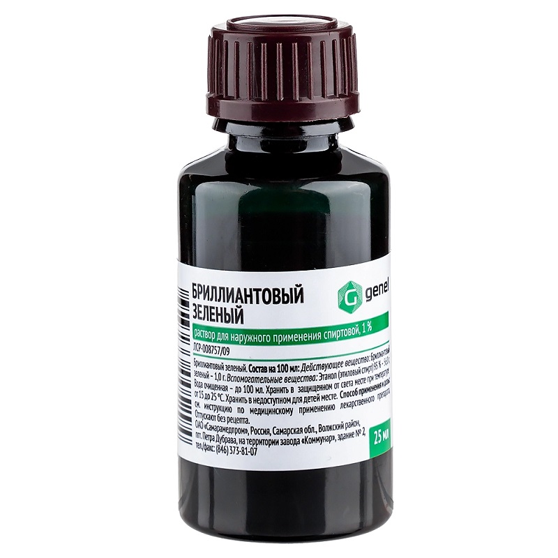 Смотреть все аналогиБриллиантовый зеленый 1% раствор спиртовой для наружного применения 25 мл 1 шт Самарамедпром