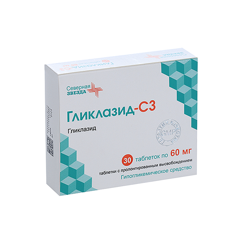 1 таблетка гликлазида с пролонгированным высвобождением 60 мг эквивалентна 2 таблеткам гликлазида с пролонгированным высвобождением 30 мг.