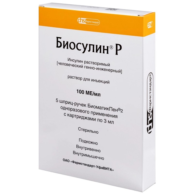 Биосулин® Р — препарат инсулина короткого действия и обычно применяется в комбинации с инсулином средней продолжительности действия (препаратом Биосулин® Н).