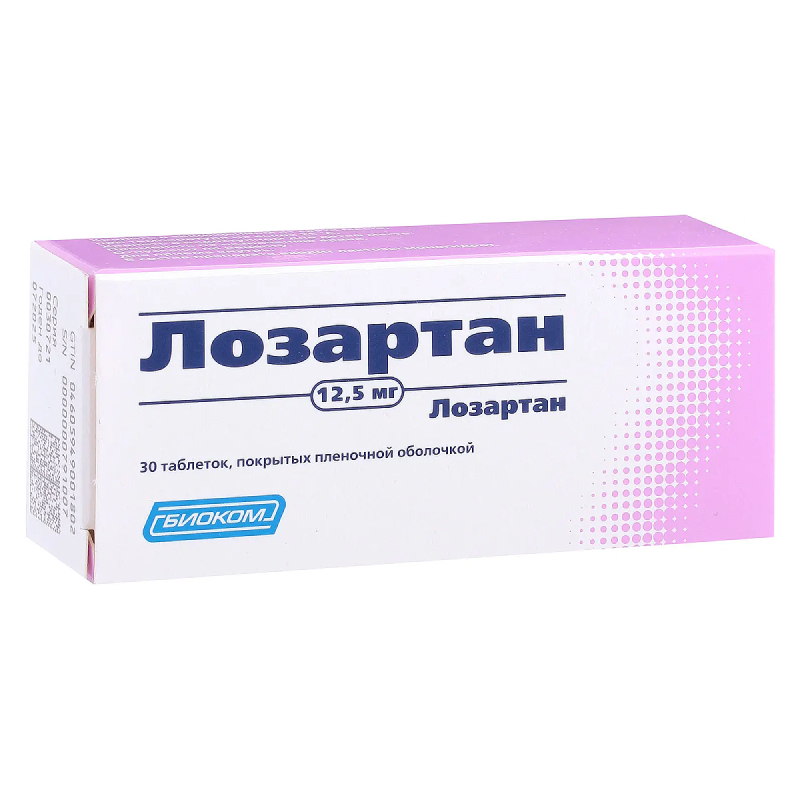 Смотреть все аналогиЛозартан 12,5 мг таблетки покрытые пленочной оболочкой 30 шт Биоком