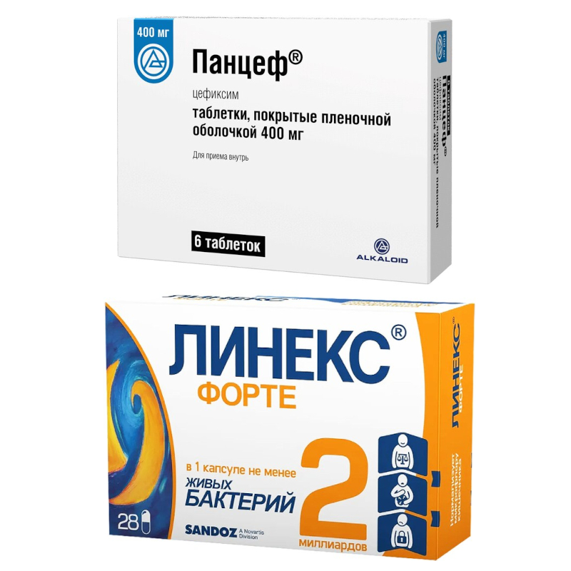 Набор Панцеф 400 мг таблетки покрытые пленочной оболочкой 6 шт + Линекс Форте капсулы 28 шт