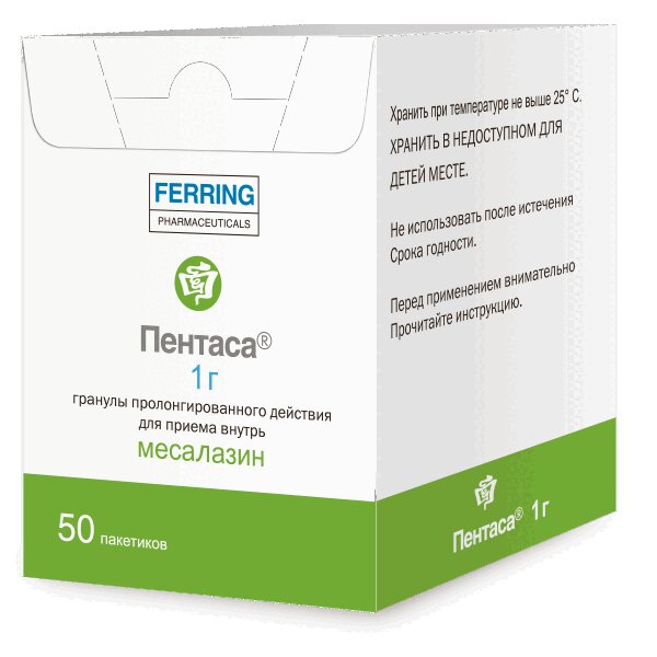 Смотреть все аналогиПентаса 1 г гранулы с пролонгированным высвобождением для приема внутрь 50 шт