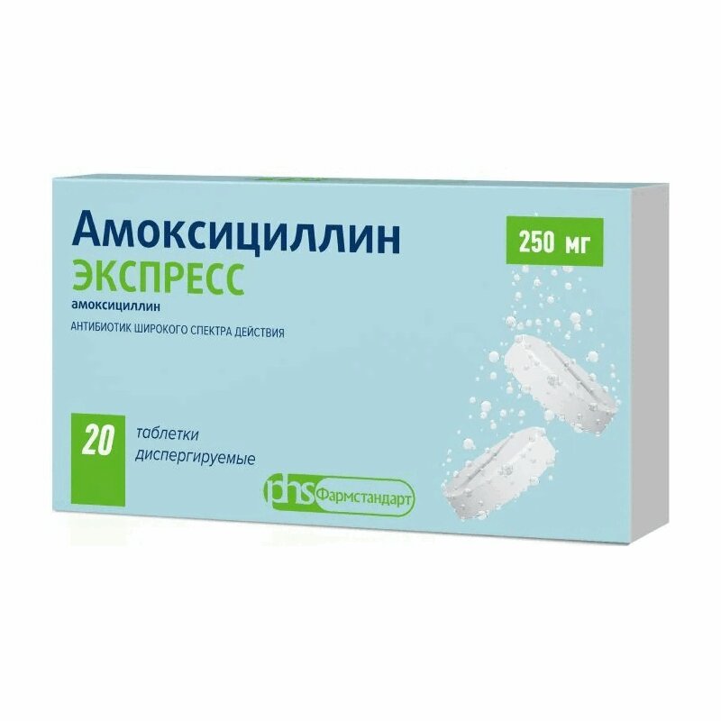 Амоксициллин ЭКСПРЕСС таблетки диспергируемые упаковка контурная 250 мг 20 шт
