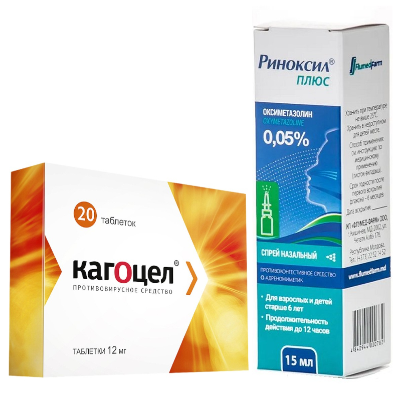 Инструкция по применению Набор Кагоцел 12 мг таблетки 20 шт + Риноксил Плюс 0,05% спрей назальный 15 мл