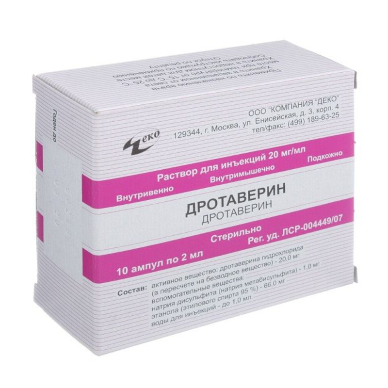 | дротаверин (в виде гидрохлорида) | 20 мг | 40 мг |