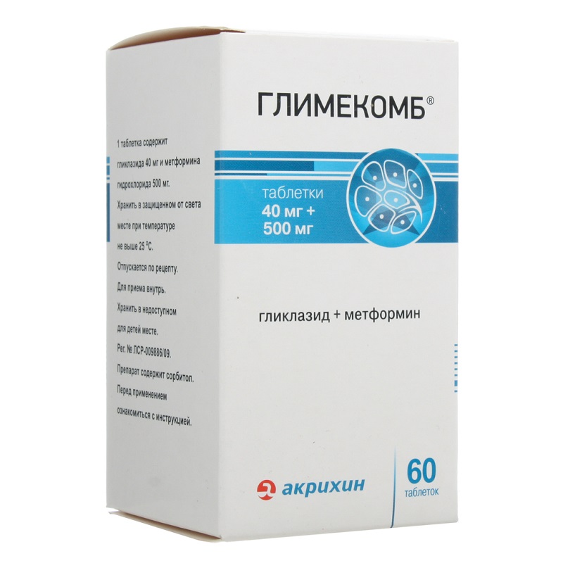 Комбинированный гипогликемический препарат для перорального применения. Глимекомб® представляет собой фиксированную комбинацию двух пероральных гипогликемических средств группы бигуанидов и группы производных сульфонилмочевины.