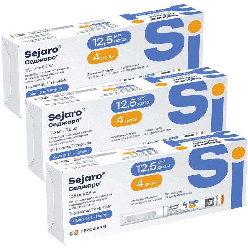 Набор 3Х Седжаро 12,5 мг/доза раствор для подкожного введения шприц-ручка 2,4 мл + иглы 4 шт в Уфе