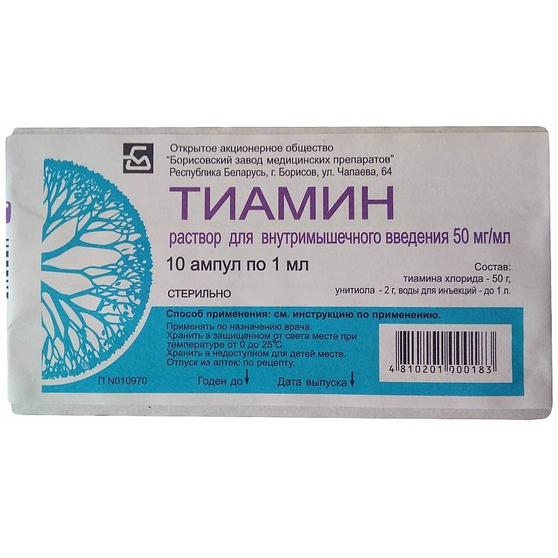 Смотреть все аналогиТиамин 50 мг/мл раствор для внутримышечного введения 1 мл 10 шт Борисовский завод медицинских препаратов в Ростове-на-Дону