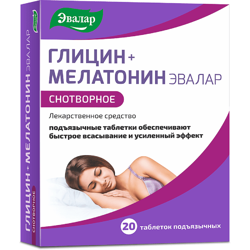 Глицин+Мелатонин Эвалар 100 мг+3 мг таблетки подъязычные 20 шт
