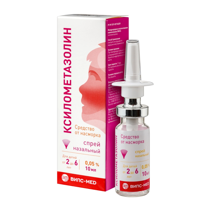 Инструкция по применению Ксилометазолин 0,05% спрей назальный для детей 2-6 лет 10 мл