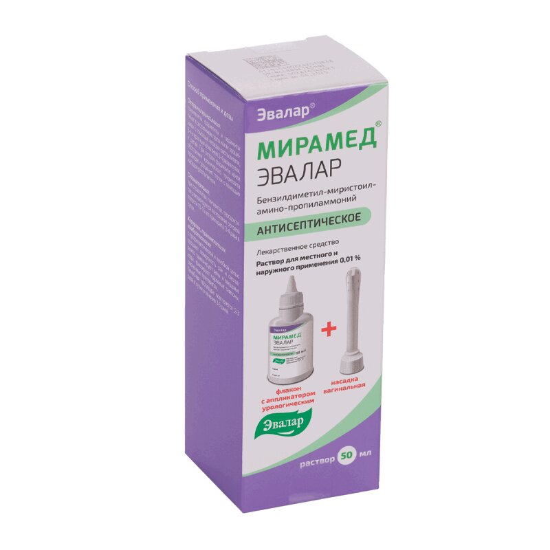 Смотреть все аналогиМирамед Эвалар раствор для местного и наружного применения флакон 0,01% фл.50 мл