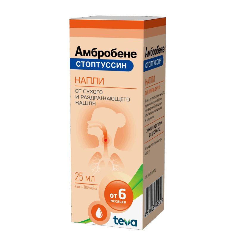 Инструкция по применению Амбробене Стоптуссин 4 мг+100 мг/мл капли для приема внутрь 25 мл