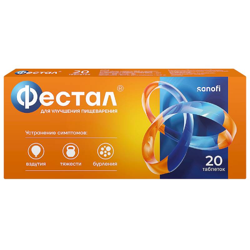 Фестал таблетки кишечнорастворимые покрытые оболочкой 20 шт