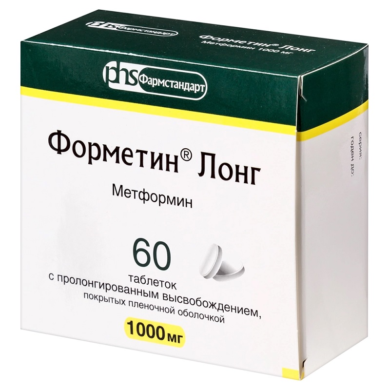 Форметин Лонг 1000 мг таблетки покрытые пленочной оболочкой с пролонгированным высвобождением 60 шт