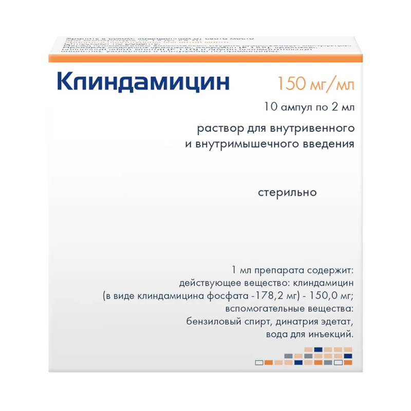Клиндамицин раствор для инфузий ампула 150 мг/ мл амп.2 мл 10 шт