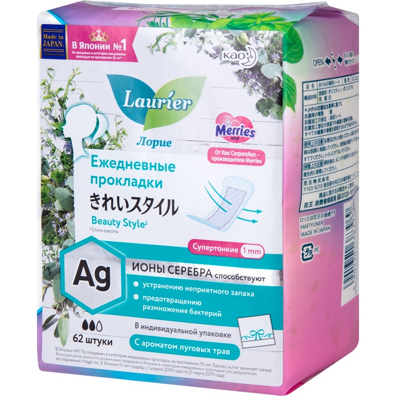 Ежедневные прокладки Laurier Beauty Style с ионами серебра без запаха - Гигиенические изделия из нетканного гипоаллергенного материала без ароматизаторов