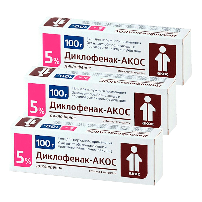 Инструкция по применению Набор 3Х Диклофенак-АКОС 5% гель для наружного применения 100 г