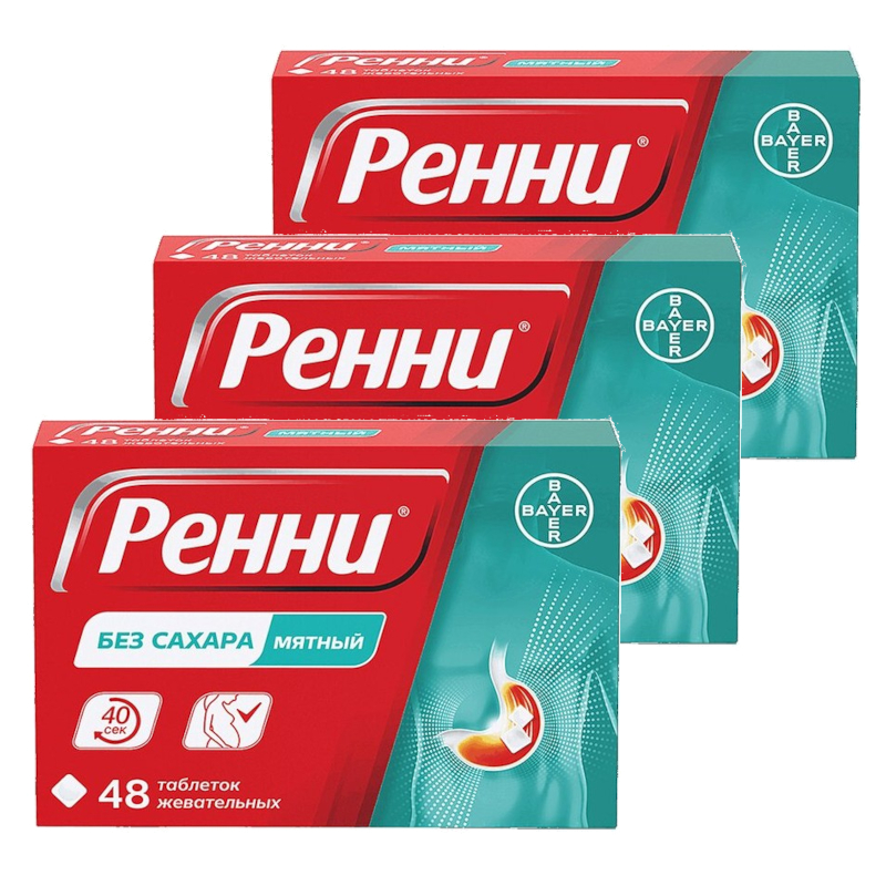 Набор 3Х Ренни 680 мг+80 мг таблетки жевательные без сахара Мята 48 шт