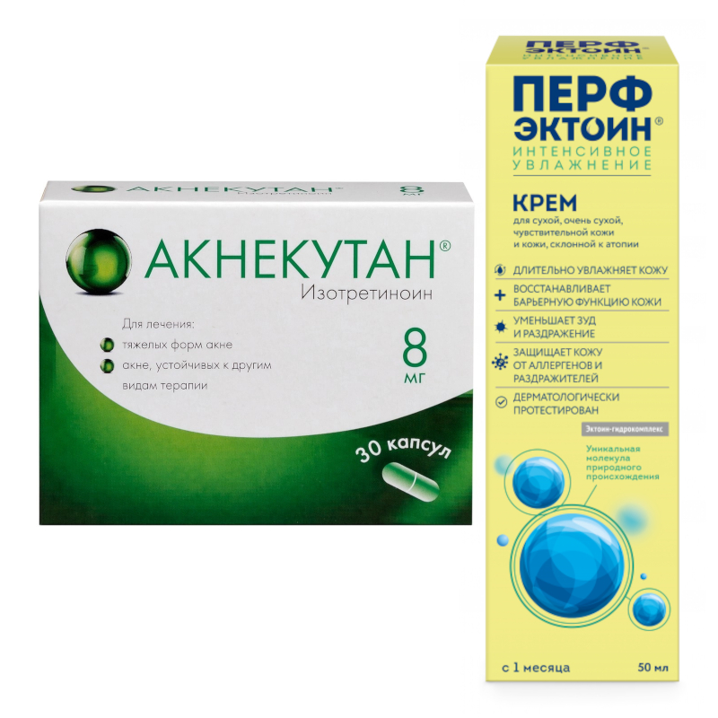 Набор Акнекутан 8 мг капсулы 30 шт + Перфэктоин крем для наружного применения 30 мл